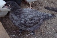 Silkies have black skin, 5 toes, and a mulberry comb which is both mulberry coloured and shaped like a cushion. The male has a larger mulberry than the hen. Wattles are very small and the ear lobe is a bright blue.