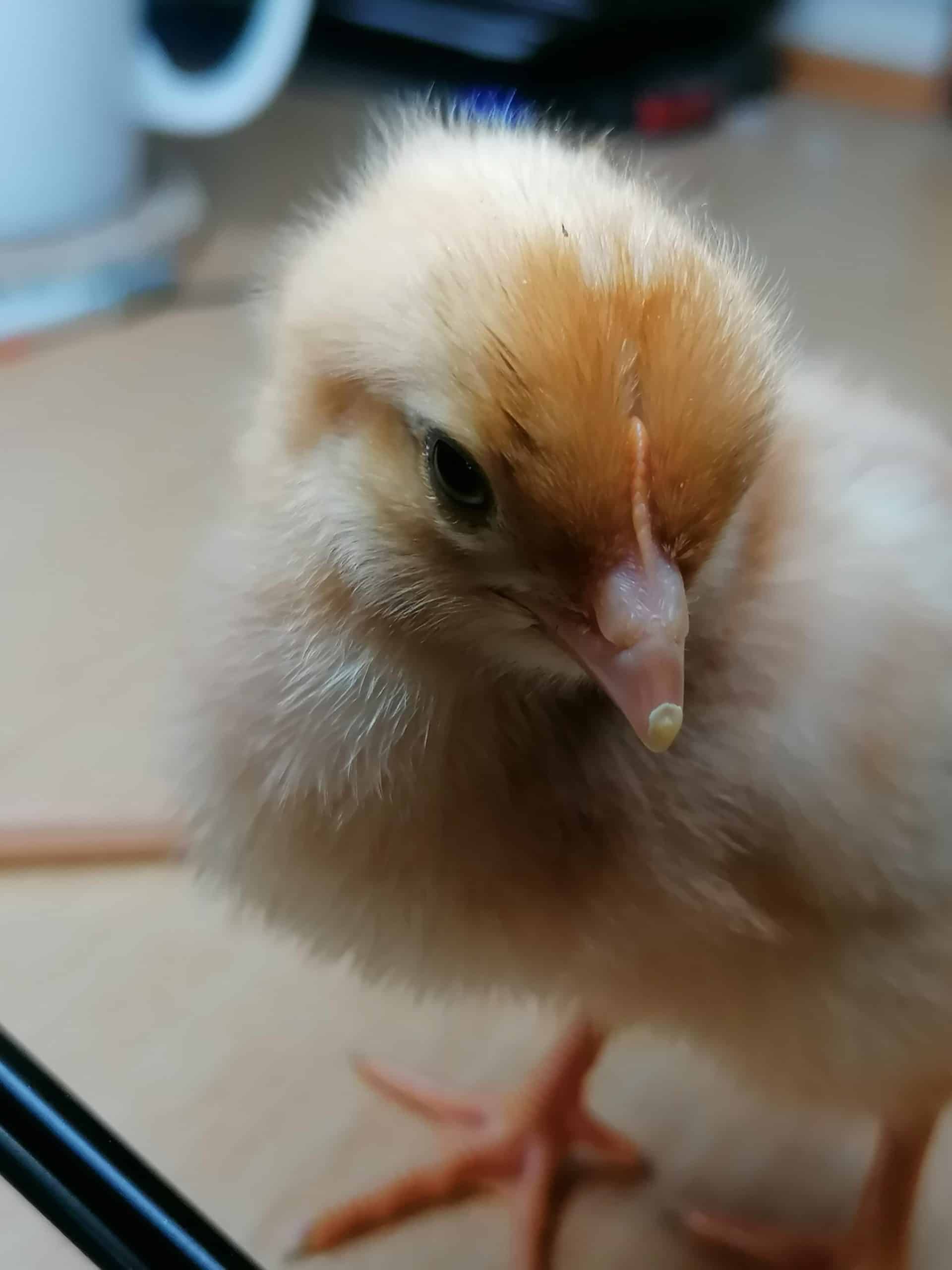 This hen has been hatched with a skull deformity. Consequently her beak points to the side and is misaligned. She will need her new owner to be prepared to file her beak with an emery board. Much like you file your own nails. Beaks are made of keratin which is the same stuff that fingernails are made of. If the beak was left to its own devices it would curl back on itself into a hook as the bottom beak is not there to keep it in check. Once the beak hooks over, the hen can no longer eat. Beaks have a blood supply like dogs claws but the end doesn’t and it is this (dead end) which is gently filed back. A bit of reshaping on the sides might also be needed on occasion.