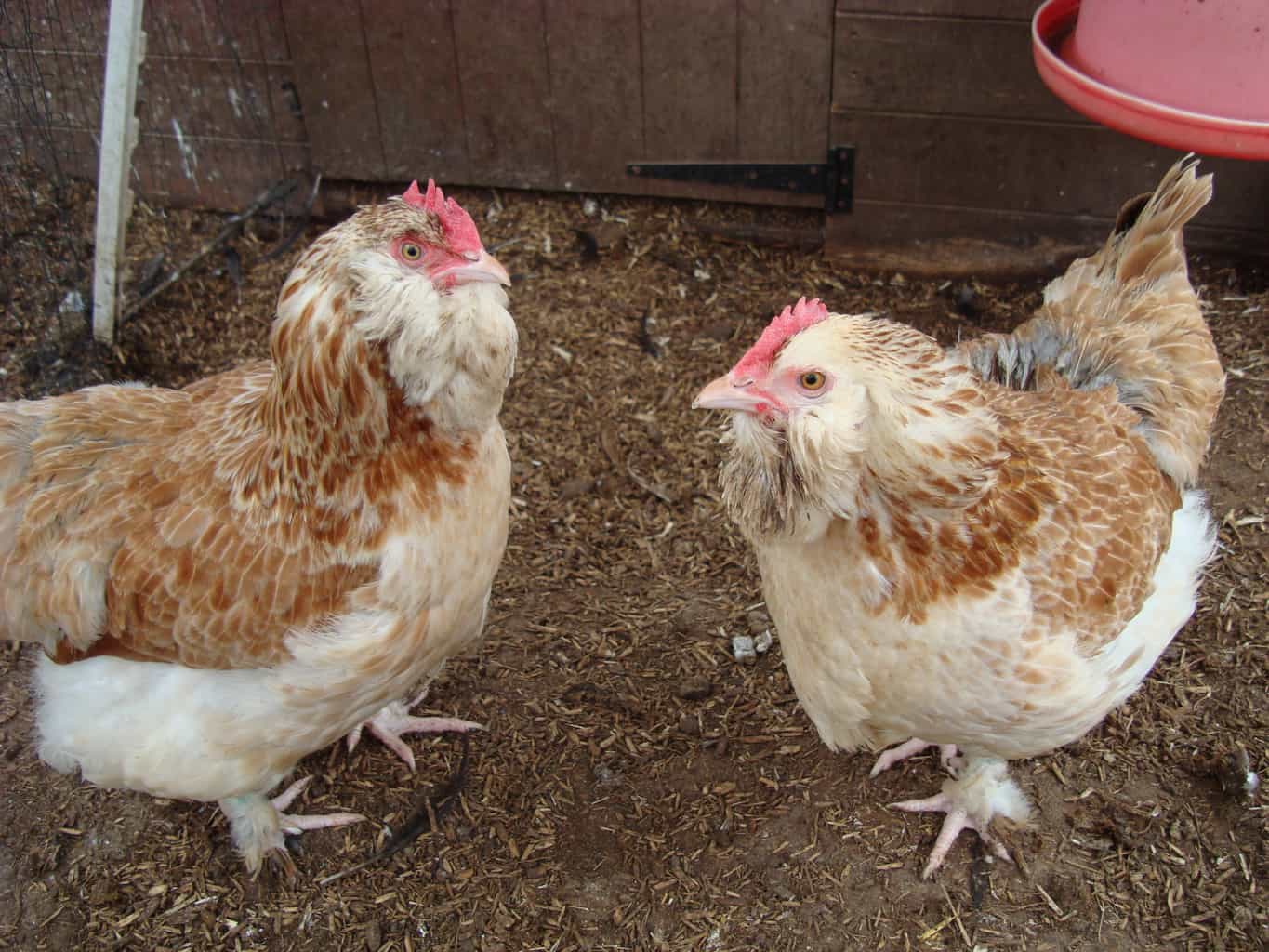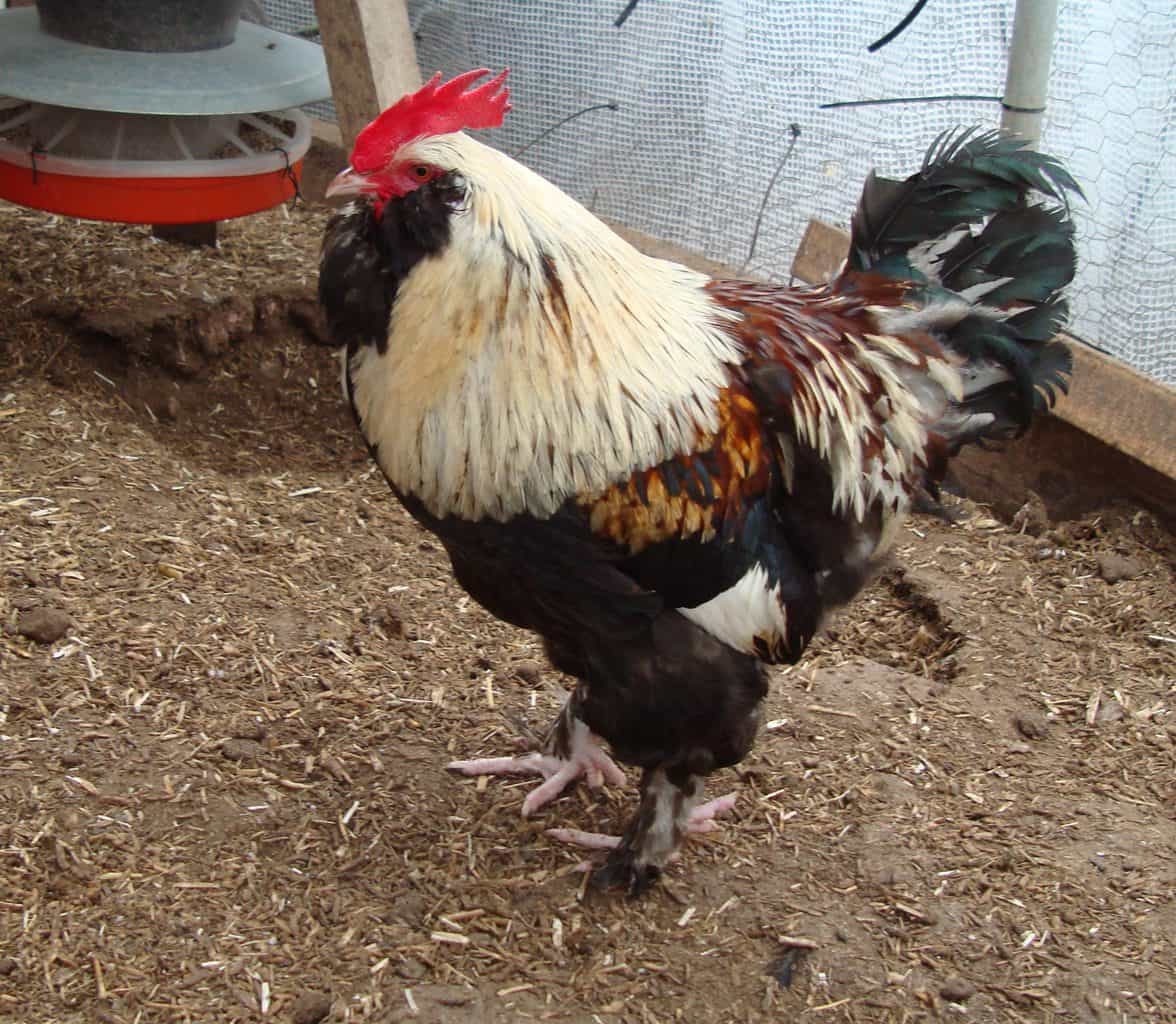 Faverolles hens love to over preen the beards and saddle of cockerels so the males are often seen with missing or broken feathers in these areas.